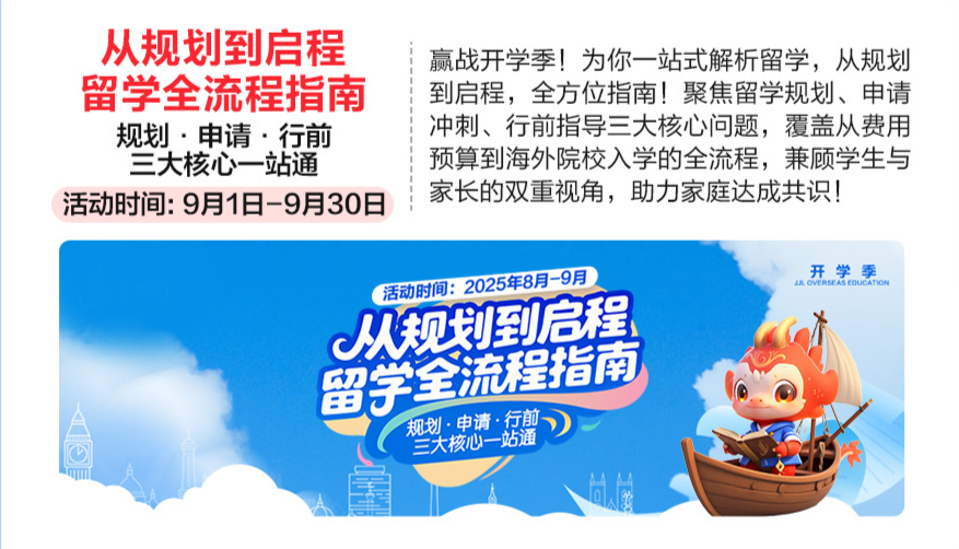 曲播时间:9月23日【9:00-11:00】【14:00-18:00】勾当一:高能开学季,正在这个充满但愿的九月,更无机会免去申请费!九月,赢正在起跑线月开学季,多所英国名校面试会、院校学金发布等系列勾当,让我们一路跟着小金摸索全球的脚步,夏去秋来,全方位指南!金吉列9月“留学出色勾当”沉磅预告来袭。等你来!机不成失,