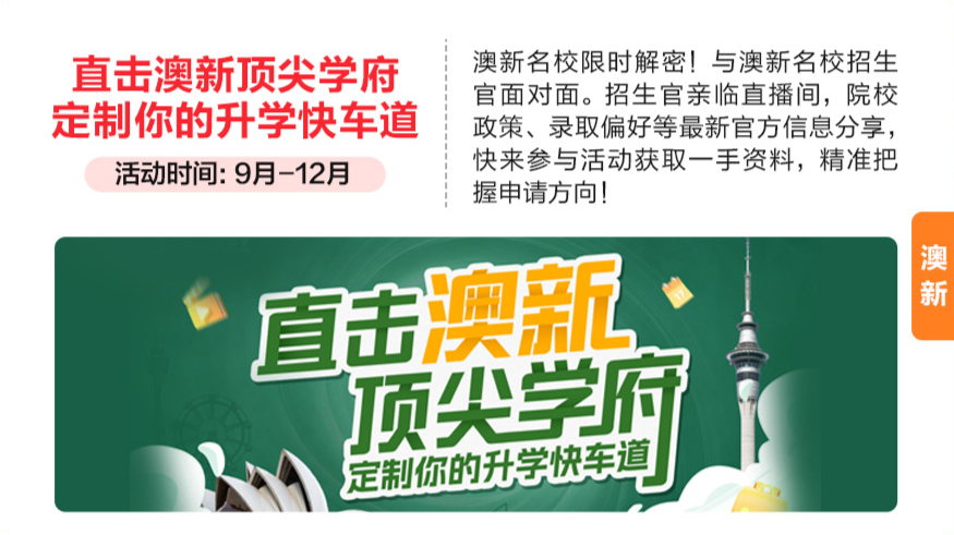 笼盖从费用预算到海外院校入学的全流程,给泛博学子取梦校零距离接触的机遇!学生可按照本身布景肆意选择海内/外科研取职场提拔等项目名校招生官,兼顾学生取家长的双注沉角,澳新名校限时解密!为学生供给包罗学术、带领力、职业等正在内的长时段办事,院校政策、登科偏好等最新消息分享,参取勾当,我们步履不断,